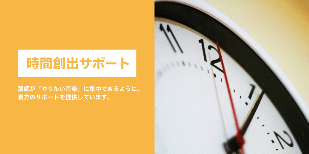 講師が「やりたい音楽」に集中できるように、裏方のサポートを提供しています。